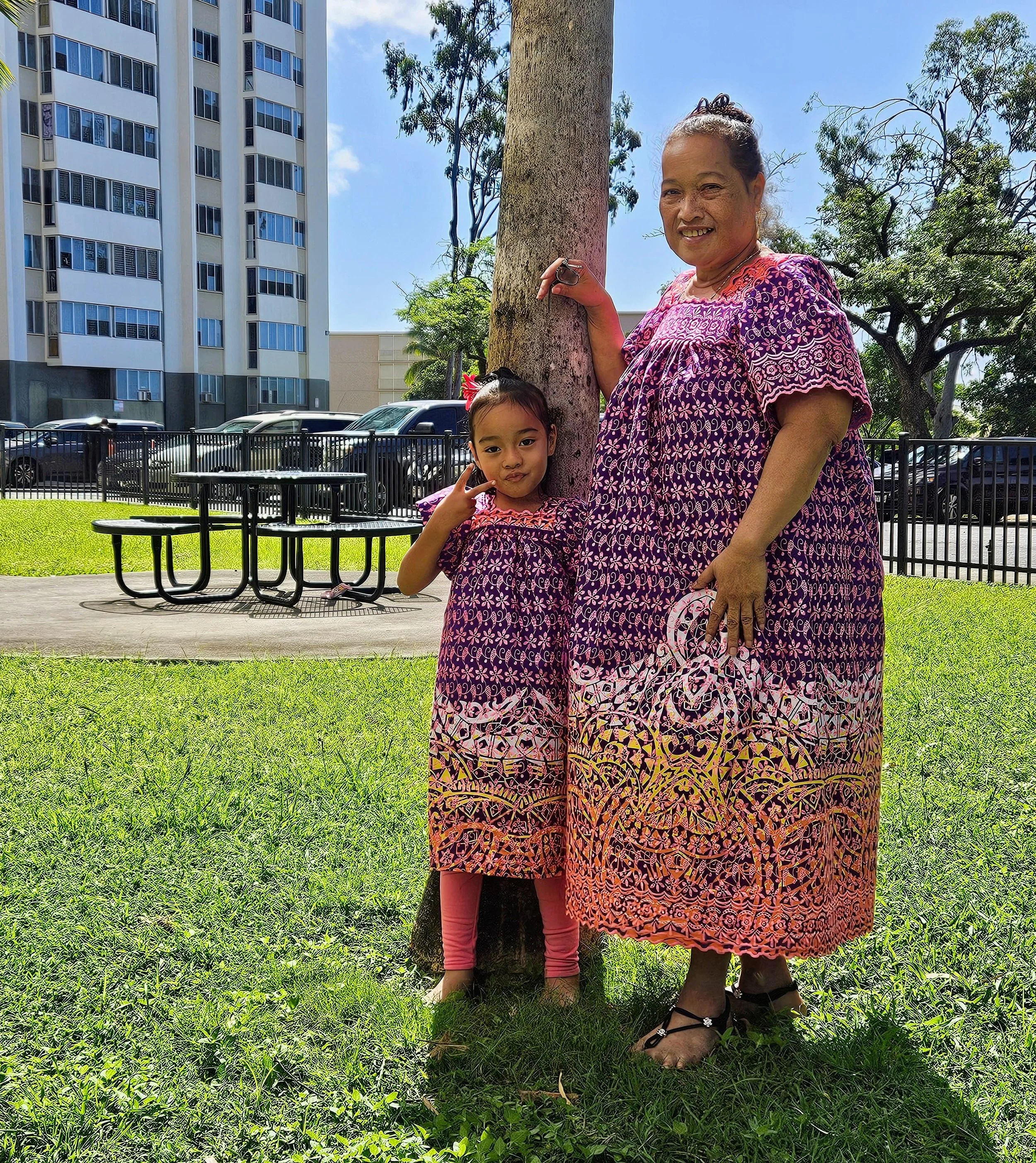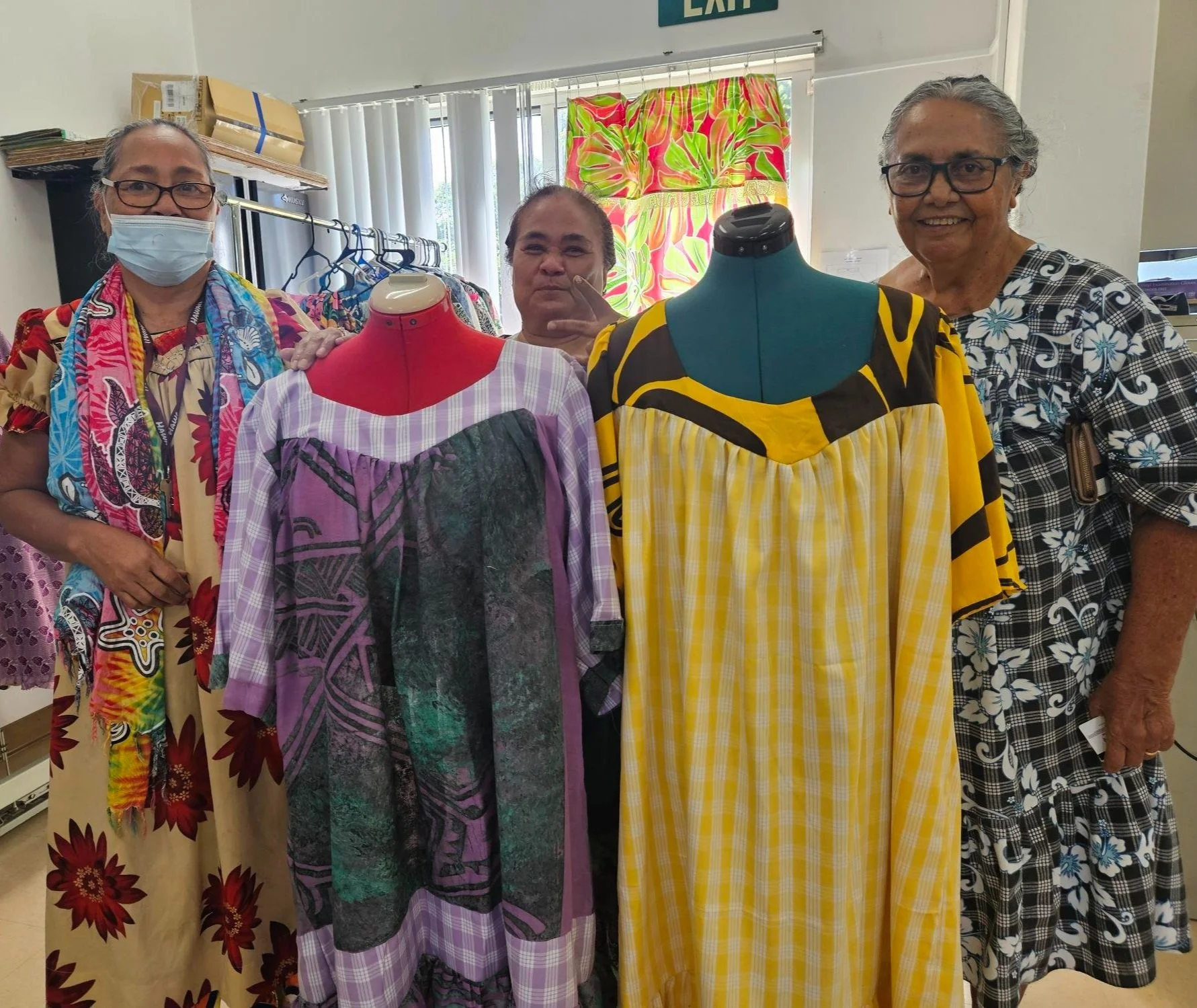 A familiar face at Seams Wonderful! Former KKV youth tennis coach Aunty Vailima Watson commissioned dresses from the program. Mahalo for the support! Photo courtesy of Seams Wonderful.