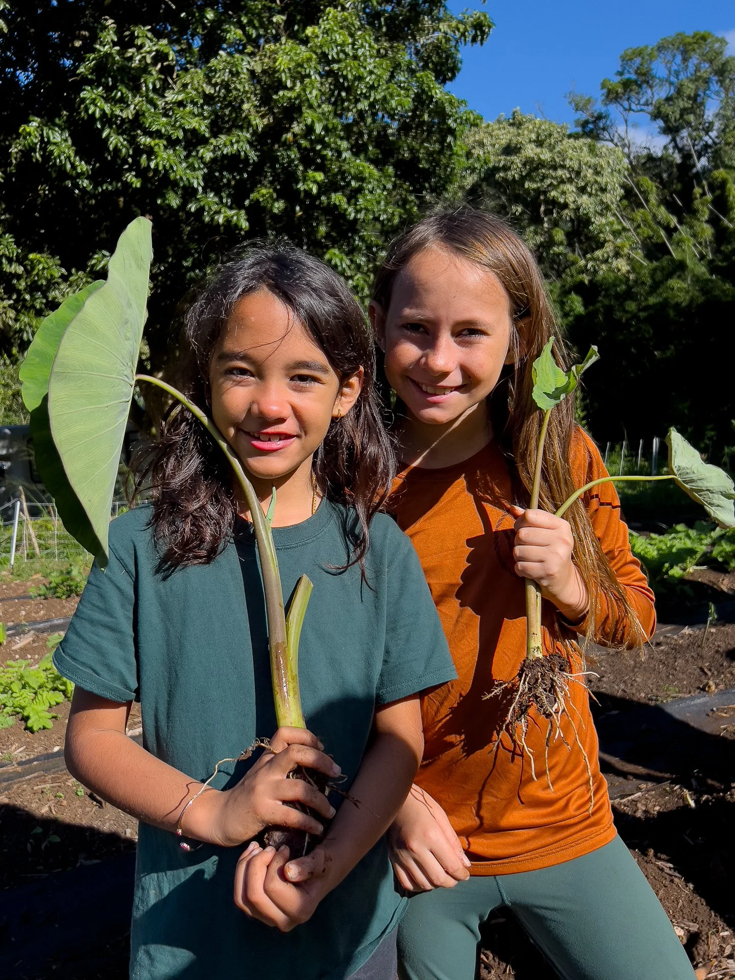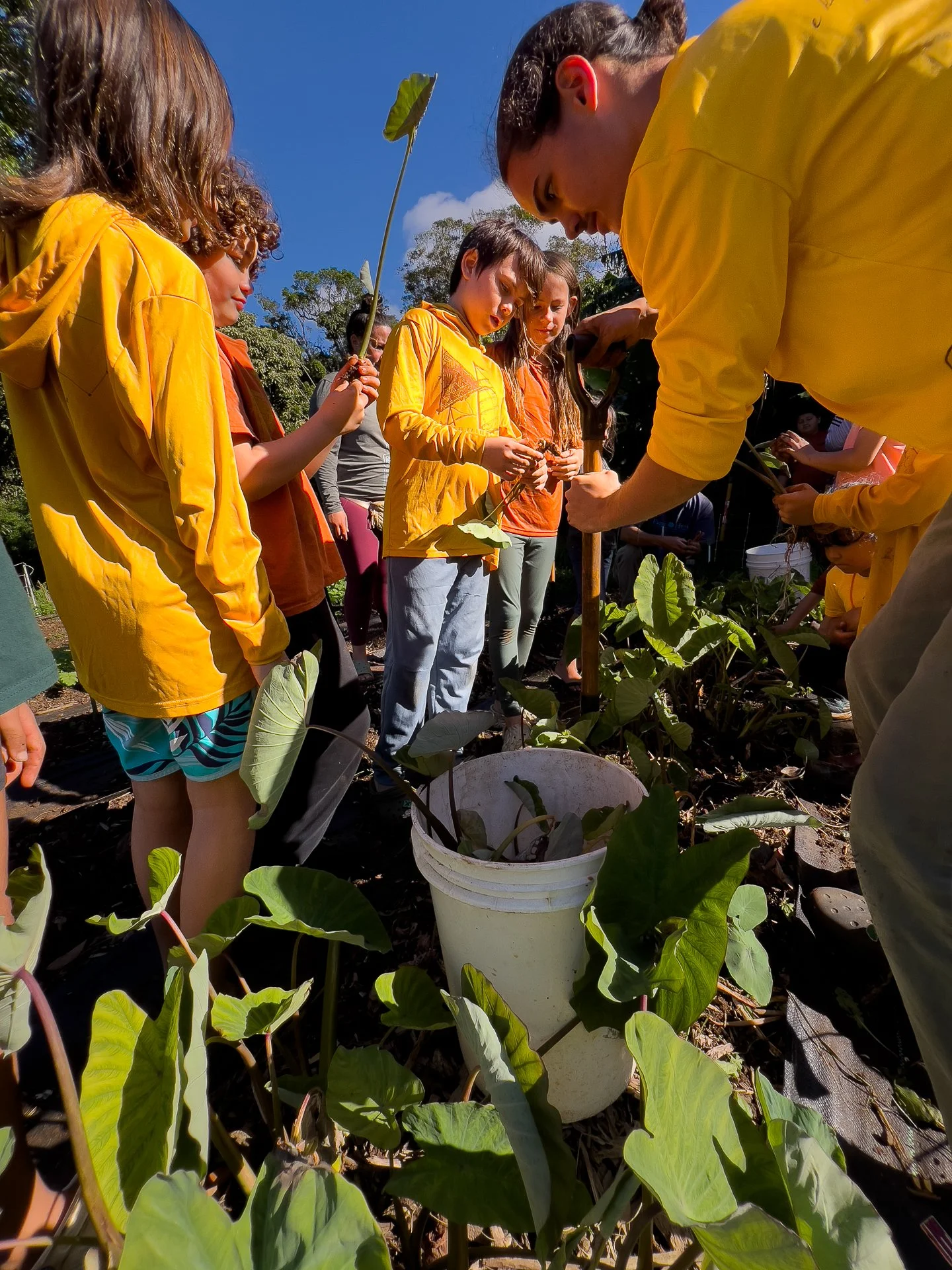Mai Uka Kuʻu Waʻa participants care for kalo at Hoʻoulu ʻĀina. Photo by Kaʻōhua Lucas.